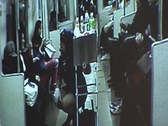 On my search for alternative art spaces in Tokyo I came across Rice+, a private organization based in Hikifune, which features a gallery space in an old rice shop and an artist in residence program for foreign arists. I was happy to present them my material of artist spaces in Frankfurt and to learn of art activities in their neighbourhood. The next saturday there was a presentation of artist Tanishi K, "Fly Cafe" [flyer], a very funny exhibition prentending the existence of a fake Kyojima airport and a video by Tanishi K, showing her dressed as a fly attendand of Kyojima Airlines serving drinks to customers of the Tokyo subway. The following pictures show excerpts from her video: |